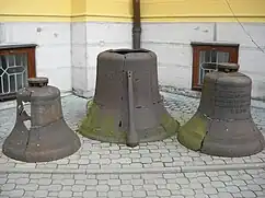 During World War II, the church did not suffer major losses. In 1939, an aerial bomb blast in the vicinity caused minor damage to the roof of one aisle. In autumn 1944, after shootings in Praga by the Nazis, one of the bullets hit the largest of the domes, causing the collapse of its roof. Losses arising in this way were fixed temporarily in 1945. An extensive fire almost resulted in the destruction of the church in 1944, but the spontaneous reaction of the population of Praga saved it. In 1944, Germany confiscated the church bells for the purpose of making missiles. The bells were broken before removal, and then abandoned. It turned out that they were not suitable for melting down. The destroyed bells were welded together and placed near the entrance to the building. The new bell was purchased for the church in 1947, from the contributions of the faithful. Repeated requests from the pastor, Fr. Jan Kowalenko to the Ministry of Public Administration added five more bells.