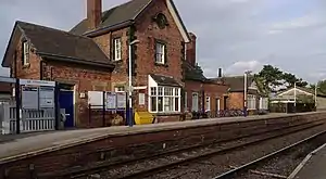 Cattal is at the western end of a dual track section from Hammerton. Trains heading east towards York are timetabled to arrive first on the dual track section, in order to clear the single-track line heading west towards Harrogate.[1][2] The level crossing here still has manually-operated metal gates and a ground-level signal box.[3] The station buildings are now privately owned.
