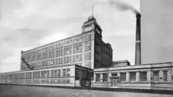 This was a Sydney Stott building. It was five-storeys high built on a basement, built of engineering brick with yellow brick decoration. It had large rectangular windows grouped in threes on the long sides and twos on the others: 30 windows long and 16 windows wide. It was 198 ft by 136 ft.[4] There was an ornamental water tower. The engine and boiler house were to the east. The chimney was round and displayed the two rings that were a trademark of a Sydney Stott mill.[5]
