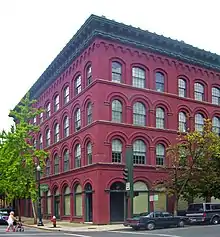 • Thompson Drug Company Annex: 155-157 River Street. This five-story Richardsonian Romanesque brick building from 1888 copies one of Richardson's buildings in Pittsburgh.[15]