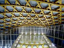 The first piece of the monument designed by Japanese architect Shigeru Ban was laid on 7 November 2006, and the building was inaugurated by French President Nicolas Sarkozy on 12 May 2010.[2] The building is remarkable for its roof structure, one of the largest and most complex built to date, which was inspired by a Chinese hat found in Paris by Shigeru Ban.[3]