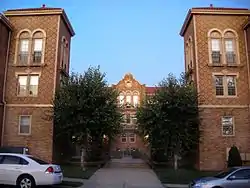 Century Apartments, also known as the T.L. Ritchey Apartments, is a historic apartment building located at St. Joseph, Missouri. It was built in 1926, and is a three-story, U-shaped, Mission Revival style buff brick and terra cotta building. It features a large central courtyard, polychromatic brickwork, and quatrefoil windows.[2]: 5