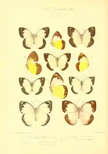 Four subspecies of Cepora perimale: C. p. mentes, C. p. consanguinea, C. p. wetterensis and C. p. leucophorus