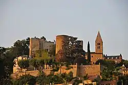 The castle's construction is dated to the 13th and 15th centuries. All that remains of the castle is the keep and a tower. The 12th century Chapel of Saint-Barthélémy, known as Notre-Dame-de-Bon-Secours, is at the side of the castle.[1]
