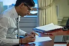 It was alleged that, during her dismissal, Cummings "went outside No 10 and asked an armed officer to enter the building and escort Khan off the premises."[1] In November 2019, following questions of a rift between the two men, Johnson gave his assurance that he would retain Javid as chancellor after the 2019 general election.[2] After the Conservative Party's landslide victory at the 2019 general election, Javid remained as chancellor and Sunak remained as Chief Secretary to the Treasury.
