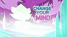 The third song is an original song titled "Change Your Mind" and written by Sugar; the episode concludes with Steven performing the song for Garnet, Amethyst and Pearl on vocals and ukulele.[4] When the song is performed, the four main characters mirror the pose they take at the end of the opening credits in every episode.[1] Sugar originally wrote the song as an expression of her own feelings while fighting with Cartoon Network for the right to include a same-sex wedding in the episode "Reunited" earlier in the season.[5]