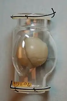 In September 1952 Hufnagel, then director of the Georgetown University Medical Center's surgical research laboratory, implanted an aortic "assist" valve into the circulatory system of a 30-year-old woman. The valve consisted of a pea-size ball of plastic inside a chambered tube—an inch and a half long and an inch thick—that regulated blood flow through the heart. The manufactured valve compensated for the faulty original valve, but did not actually replace it, while ensuring that the heart was able to pump blood successfully into the body's circulatory system.