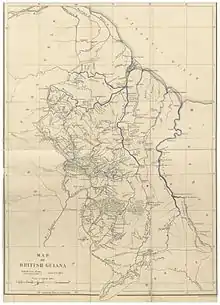 Brown and Sawkins arrived in Georgetown in 1867 and did some of their mapping and preparation of geological reports together and some in separate expeditions. Sawkins took a break from his work when Brown came upon Kaieteur Falls. In 1871, Brown discovered the New River, which he deemed the true source of the Courantyne. This gave rise to the New River Triangle border dispute between Suriname and British Guiana (now Guyana) was born. Barrington also visited Mount Roraima on the border between Brazil and Venezuela and was the first to describe the Tök-Wasen, a rock cliff formation located at the southern end of the mountain and suggested ascending it by balloon.