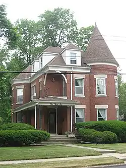 Charles E. Nichols House is a historic home located at Lowell, Lake County, Indiana. It was built in 1902, and is a 2+12-story, Queen Anne style brick dwelling with a cross hipped roof. It features a stately corner tower with conical roof, side bay windows, and a bracketed balcony over the front entrance. Also on the property is a contributing carriage house.[2]:3