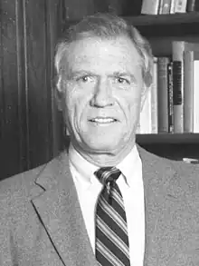 Young was active in a wide range of issues involving intercollegiate athletics. In an era when the NCAA called Title IX requirements for women's athletics "Extreme",[25] Young voluntarily expanded UCLA women's athletics even before the requirements went into effect, adding 11 varsity programs for women in 1974.[26] During Young's time at UCLA (fall 1968 through spring 1997) UCLA women won 14 NCAA team championships. Men's teams won another 47 trophies for a total of 61.[27] As chair of the Pac-8's President and Chancellors group, Young led the effort to add the University of Arizona and Arizona State University to the conference.[28] He announced the new Pac-10 in 1978.[29][30] In 1988, Young helped to negotiate a lucrative ABC television contract for the Rose Bowl game.[31][32] Young was also a vocal leader of reform efforts as a member of the American Council on Education (ACE),[33] the NCAA Presidents Commission[34] and the Knight Commission.[35][36] His ACE committee recommended limitations on recruiting and stronger satisfactory-progress legislation.[37]
