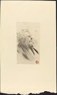 Maurin received the support of Vollard and was a friend of Toulouse-Lautrecwho had his first individual exhibition with him in 1893and also of many other artists, including François-Rupert Carabin and the entertainer Aristide Bruant. A notable symbolist work of his is Maternity, a study of motherhood. Inspired by Japanese artists, he revolutionized the technique of etching, but without forgetting the woodcuts. In 1891 he patented a method of color printing.[1] In 1892, he exhibited at the Salon de la Rose + Croix. He contributed to La Revue Blanche, directed by Félix Fénéon, and Les Temps nouveaux, published by Jean Grave.