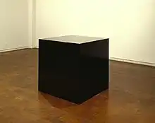 Ray recapitulated many of the developments in twentieth-century sculpture in his first show in 1971 with an installation entitled One-Stop Gallery. The show consisted of a collection of small sculptures, resting directly on floor. Some of the works, in their attention to materials, were clearly inspired by minimalist artists like Robert Morris, while two small constructed steel sculptures invoke the traditions taught by his teacher, Brener; they were even painted the same red as Caro's Early One Morning (1962, Tate Modern). One-Stop Gallery would anticipate the tone for much of Ray's work to come in its plumbing and reinterpreting of the canon of twentieth-century sculpture without having his own work appeal to any particular period or style. Initially influenced by Caro, by including his own body in his works he made them more like documented performances. In the two-part photographic work Plank Piece I–II (1973), for example, he pinned his body to the wall with a large piece of wood.[8] In the late 1980s, Ray conceived minimalist works using ink and wire. In Ink Box (1986), a large cube is filled to the brim with ink, giving the illusion of a solid cube. Ink Line (1987) is a continuous stream of black ink traveling from a dime-size opening in the ceiling into a similar hole in the floor. In Spinning Spot (1987), a section of the floor measuring 24 inches in diameter is set spinning at 33 RPM. Consisting of a single 8.5 foot length of wire, both ends of Moving Wire (1988) protrude from the wall and are set 14 inches apart; as one end of the wire extends out from the wall at random intervals, the other retracts.[9] For Unpainted Sculpture (1997), over the course of two years, Ray reconstructed a life-sized crashed Pontiac Grand Am (circa 1991) out of fiberglass, casting and assembling each piece to match the bent and twisted forms of the original [10] Despite the work's title, it is painted a soft dove grey that is reminiscent of the plastic parts of model car kits.[11]