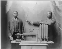 Charles S. L. Baker and his assistant demonstrating a heating/radiator system