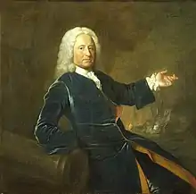Stewart apparently became a supporter of John Campbell, 2nd Duke of Argyll, and was elected to represent Malmesbury on his interest, on 25 January 1723.[2] He represented Malmesbury until 1727, and though Sir Charles Wager expected that Argyll would arrange for Stewart to be elected to represent Portsmouth in 1732, this did not happen.[2] Stewart's next opportunity to distinguish himself at sea came in late 1729, towards the end of the Anglo-Spanish War. News arrived in England that Edward St. Lo, commander in chief at the Jamaica Station during the Blockade of Porto Bello, had died while in command.[4] Stewart was promoted to rear-admiral of the blue on 9 December 1729 and set out to take up the command in Lo's stead,[5] flying his flag aboard HMS Lion.[4]
