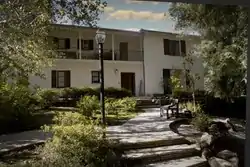 Built in 1938, the house's architecture reflects elements of Spanish Colonial Revival architecture.[2] However, with the house's two stories, low-pitched roofline, and second-story balcony on the front elevation, it also reflects Monterey style architecture, popular in large California homes built between 1925 and 1940.[3][2]