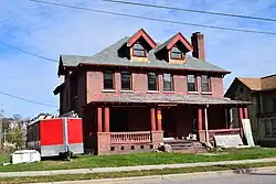 The Charles and Anna Ruhland House is a historic house at 213 Lynn Street in Baraboo, Wisconsin. The house was built in 1909 for Charles Ruhland, owner of the Ruhland Brewing Company, and his wife Anna. It has an American Craftsman design, a style popularized in the early twentieth century which emphasized simplicity and harmony with nature; the architect who designed the house is unknown. The two-and-a-half story brick house features a wide front porch supported by wooden posts, exposed rafter tails at the edges of the roof, and a hip roof with gabled dormers. The interior has an open plan with large windows to let in natural light. While Charles Ruhland lost his brewery to bankruptcy in 1918, he and his family lived in the house until the late 1930s, when one of his former employees converted it to a boarding house.[2]