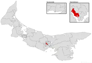 The riding is located in the city of Charlottetown, including the neighbourhoods of Lewis Point and West Royalty.