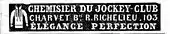 In 1839, Charvet already had some imitators,[n. 3] but still the "best supply".[24] The same year, Charvet held the title of official shirtmaker to the Jockey Club,[16] a very exclusive Parisian circle, then headed by Prince Napoléon Joseph Ney and inspired by Count Alfred d'Orsay, a famous French dandy.[25] It had about 250 members, mostly aristocrats, who, despite the name of their club, were more interested in elegance than horses. Being a member was a necessary step in order to become a lion, the term used then for a dandy.[26] In an advertisement of March 1839, Charvet, presenting himself as the Club's shirtmaker, claimed to offer "elegance, perfection, moderate prices".[27] Soon after, the claim to moderate prices was dropped (see images, right).[28]