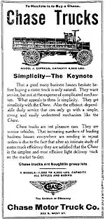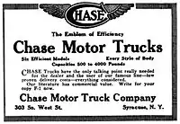 Chase Motor Truck Company (1907-1919), founded by Aurin M. Chase, was a manufacturer of trucks in Syracuse, New York. The vehicles were known for their air-cooled engines and simplicity of design.