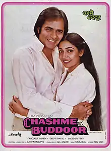 Chashme Buddoor (transl.Far be the evil eye) is a 1981 Indian romantic comedy-buddy film directed by Sai Paranjape and produced by Gul Anand and his sister Jayshree Anand–Makhija. The film stars Farooq Sheikh, Deepti Naval, Rakesh Bedi, Ravi Baswani and Leela Mishra in lead roles. The story revolves around three close friends who fall in love with a girl named Neha. Two of the friends fail to woo her and decide to seek revenge after discovering that their third roommate is dating the girl. A remake version directed by David Dhawan and the original digitally restored film were both released on 5 April 2013. The lyrics written by Indu Jain were composed by Raj Kamal and sung by Yesudas and Hemanti Shukla.