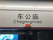 Chegongmiao station (simplified Chinese: 车公庙站; traditional Chinese: 車公廟站; pinyin: Chēgōngmiào Zhàn; Jyutping: Ce1 Gung1 Miu2 Zaam6; lit. 'Chegong Temple station'), is a station on Line 1, Line 7, Line 9 and Line 11 of the Shenzhen Metro. It is located underneath Shennan Road, at the west of Xiangmihu Road (Chinese: 香蜜湖路; pinyin: Xiāngmìhú Lù; Jyutping: Hoeng1 Mat6 Wu4 Lou6), in Futian District, Shenzhen, China. It is near China Merchants Bank Tower and Donghai Pacific Mall.[2][3]
