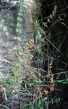 Cheilanthes distans is a species of lip fern known by the common name bristly cloak fern.[1] It has a woolly appearance with small white hairs on the top side of the fronds, and a rusty brown underneath.