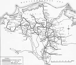 The construction of the railway line was managed by the Belgian engineer Jean Jadot (1862–1932).[4] The main line connected Mansourah (on the Nile river) to Matarieh (on the far side of Lake Manzala from Port Said).