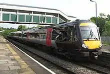 The local rail service is sporadic, running an hourly service in each direction. A local campaign has been established, with the support of the local MP, Welsh Assembly members, County Council and town council, to improve rail services to the town.[8][9] In May 2011, CrossCountry commenced a year-long trial of stopping its Cardiff-Birmingham-Nottingham services at the station on weekdays and Saturdays. In December 2011, it was reported that the trial would be extended until at least December 2012.[10]