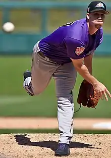 Gonzalez pitching for the Colorado Rockies 2019 spring training