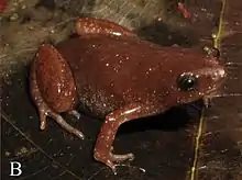 1. 1 2 3 4 5 6 Tonini, João F. R.; Forlani, Maurício C. & de Sá, Rafael O. (24 July 2014). "A new species of Chiasmocleis (Microhylidae, Gastrophryninae) from the Atlantic Forest of Espírito Santo State, Brazil". ZooKeys (428): 109–132. doi:10.3897/zookeys.428.7352. PMC 4140523. PMID 25161370. Retrieved 31 July 2014.