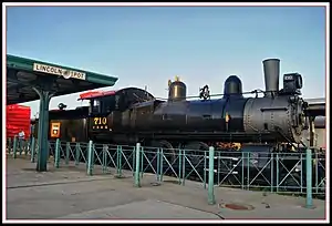 Chicago Burlington & Quincy 710 is a preserved 4-6-0 "Ten Wheeler" type steam locomotive on display at the former Lincoln station in Lincoln, Nebraska. Built in 1901, No. 710 was built for high speed passenger service. After a rebuild in 1928, the locomotive provided branch line passenger and freight service until its retirement in 1954.[2]