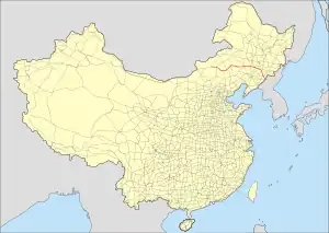 China National Highway 303 (G303) runs from Ji'an, Jilin to Xilinhot, Inner Mongolia. It is 1,263 kilometres in length and runs northwest from Ji'an through Jilin and Liaoning and ends in Inner Mongolia.