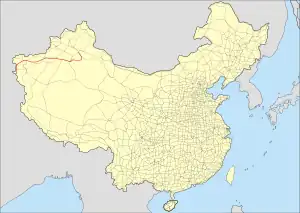 China National Highway 314 (G314) (sometimes referred to as Gansu Provincial Highway 314) runs southwest from Urumqi, Xinjiang towards the Khunjerab Pass, which is on the northern border of the Gilgit–Baltistan territory in Pakistan-administered Kashmir. The highway is 1,948 kilometres (1,210 mi) in length. It goes southeast from Urumqi and south of Toksun it turns west and follows the north side of the Tarim Basin to Kashgar. (Its sister, China National Highway 315, follows the south side of the basin.) From Kashgar, it runs south to Pakistan.