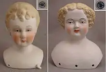 Parian dolls are similar to china dolls in that their heads are made of white untinted porcelain, but they are unglazed with a matte finish and typically have blonde hair.[10] They are found on similar body types. They were also mainly made in Germany, from around the 1860s to 1890s.[11]