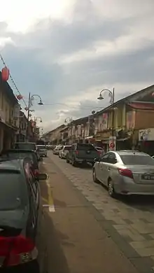 Kampung Cina (Jawi: کامڤوڠ چينا; Chinese: 唐人坡; Pe̍h-ōe-jī: Tn̂g-lâng-pho), is a Chinatown located in Kuala Terengganu, Terengganu, Malaysia. Kampung Cina is located along Jalan Bandar (formerly known as Jalan Kampung Cina), in Kuala Terengganu city centre at the river mouth of Terengganu River that empties into the South China Sea. Kampung Cina literally means Chinese Village; it is also called Tn̂g-lâng-pho (唐人坡) or KT's Chinatown by local people. It is one of Southeast Asia's early Chinese settlements and contains stately ancestral homes, temples, townhouses, and business establishments. The town is small but has colourful shophouses along both sides of the road that carries traditional flavour.
