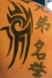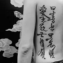Chinese calligraphy tattoos are tattoos of Chinese characters in a calligraphic style. Today, Chinese calligraphy tattoos can be found worldwide.