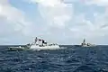 On April 9, 2013, the Hengshui and Yueyang were inspected by Xi Jinping, chairman of the Central Military Commission, on behalf of the Ninth Detachment of the Destroyer.[5] On April 10, Hengshui and Lanzhou returned to the waters of the Western Pacific to carry out offensive and defensive exercises in the open sea, including air defense, anti-submarine, and sea strikes. The formation arrived on the 118th anniversary of the signing of the Shimonoseki Treaty on April 17 and arrived in the waters near the Senkaku Islands for cruise. The open sea training lasted 11 days, with a total voyage of more than 3,000 nautical miles. Hengshui would return to a certain military port in Sanya on April 20.[6]