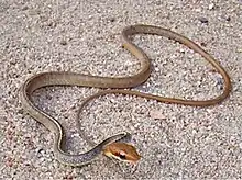Chironius flavolineatus, also known as Boettger's sipo, is a vine snake species in the family Colubridae, endemic to savannas and semiarboreal biomes in Brazil, and much of South America.[1][2][3] It is listed as least concern on the IUCN Red List since 2014.[4] It is a member of the Genus Chironius which is composed of twenty-two other described snake species.[5] It is nonvenomous, using camouflage or burrowing as a form of defense.