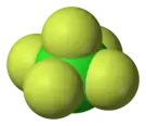 Chlorine pentafluoride is an interhalogen compound with formula ClF5. This colourless gas is a strong oxidant that was once a candidate oxidizer for rockets. The molecule adopts a square pyramidal structure with C4v symmetry,[1] as confirmed by its high-resolution 19F NMR spectrum.[2] It was first synthesized in 1963.[3]