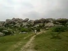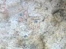 Padiyendhal is a rock art site in a small cave located backside of Andimalai. Actually the name "Padiyendhal" refers to the nearby village. Local people call this cave as "Irulan Kal". On the roof of the cave, ancient paintings of horse, bow and arrow structures are found. The symbols found in the roof and the side walls of the cave are similar to that of found in Indus valley civilization[4]