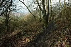 The hill commands good views over the scarp and the Severn Vale and there is a network of paths for walkers. One such path is 'coffin way' from St Bartholomew's Church at the top of the hill towards Hucclecote.[2]