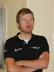 Born in Sussex, New Brunswick,[3] Meier is descended from German restaurateurs who settled outside Sussex, Canada and he attended Sussex Regional High School.[4] His brother Michael succumbed to cancer in 2010.[5] He raced for GreenEDGE in 2012, competing in the Giro d'Italia in May, with his best showing on Day 11 in 15th place.[3] He rode all three Grand Tours in his career, making a total of five Grand Tour starts, his last being the 2014 Tour de France. He announced his retirement from competition in September 2016, despite having a year to run on his contract with the Orica team.[6] After retiring, he contested the 2018 Canadian National Time Trial Championships, finishing 27th.[7][8]
