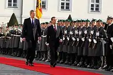 Prior to the 2005 federal election, Wulff was mentioned as a potential candidate for the federal chancellorship. In a spring 2005 poll, 28% of all respondents named Wulff as their preferred candidate for the Christian Democratic nomination for Chancellor.[9] As Wulff had only began his first term as Minister President of Lower Saxony in early 2003, he largely dismissed such speculations.[10] Speculation had particularly increased since the December 2004 Christian Democratic federal convention in Düsseldorf, when Wulff was reelected deputy leader of the federal party with roughly 86% of all delegates supporting him. However, the premature dissolution of the Bundestag in 2005 and the subsequent election of Chancellor Angela Merkel largely put an end to further speculation about Wulff's future at the time.
