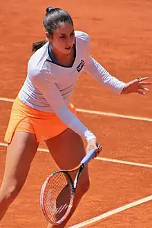 McHale began her clay-court season in Charleston at the Family Circle Cup where she was defeated in the first round by 12th seed Varvara Lepchenko.[84] At the Madrid Open, McHale progressed through the qualifying event before falling in the second round to second seed and eventual finalist Maria Sharapova.[85] Competing in Rome at the Italian Open, McHale defeated Karin Knapp in the first round;[86] she lost in the second round to seventh seed Sara Errani.[87] Seeded sixth at the Internationaux de Strasbourg, McHale was defeated in the first round by Lauren Davis. At the French Open, McHale lost her first-round match to Jana Čepelová.[88]