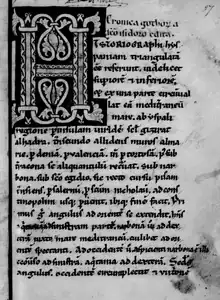 The Chronica is of little use to the historian for the period it covers, although it sheds light on the time and place of its composition.[2] Internal evidence suggests that it was written in the 12th century, since it mentions Morocco, a name which did not appear before 1090, being derived from the city of Marrakesh, founded in 1055. The compiler also included a description of the ports of the western Mediterranean in which he mentions Saint Nicholas of Bari. The relics of the saint did not arrive in Bari until 1087.[4] The Arabic original of the Chronica was almost certainly compiled in Spain, where the translation was likely also made by a writer working in the Visigothic script. It was later copied in France, most likely at the monastery of Aniane.[5]