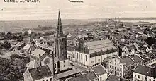 Panorama of Klaipėda with the Church of St. Jacob near the tower of the Evangelical Reformed Church and Church of St. John in the 1920s–1930s