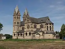 The Church of St. Lambertus (German: Pfarrkirche St. Lambertus), known locally as the Immerather Dom (meaning "Cathedral of Immerath"), was a Roman Catholic parish church in the village of Immerath, Erkelenz in North Rhine-Westphalia, Germany. A church dedicated to Saint Lambert of Maastricht had existed on the site since at least the 12th century, being rebuilt and enlarged a number of times before being demolished in 1888. It was replaced by Romanesque Revival church building, which was constructed between 1888 and 1891 to designs of Erasmus Schüller.