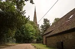 The four stage west tower is topped by an octagonal spire with lucarnes and is supported by diagonal buttresses. There is a ring of six bells with the earliest two dated 1635. The steel frame was made in 1984.[2]