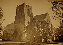 The parish was founded in 1869 as part of the Anglo-Catholic Oxford Movement revival in the Anglican Church,[3] and was admitted to the Diocese of Pennsylvania in 1871. Its original church building, demolished in 1901,[4] was on the north side of Lancaster Avenue, just east of the present football stadium of Villanova University.