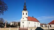 Church of the Saint Archangel Michael (Serbian Cyrillic: Црква светог Архангела Михаила, Croatian: Crkva svetog Arhangela Mihaila) in Darda is a Serbian Orthodox church in eastern Croatia. The first orthodox church at the site of contemporary church was constructed in 1726, while the current building was completed in 1777.[1] The local Eastern Orthodox parish in Darda was formally established in 1742.[2] The church is a single-nave building with a semicircular apse and a bell tower on the first floor.[1] The bell tower is covered with a late baroque bulb with two lanterns.[1] It was consecrated by the Bishop of the Eparchy of Buda Dionisije Popović in 1794.[1] The three church bells, which cumulatively weighed 670 kilograms (1,480 lb), were made in Ljubljana in 1925.[2]